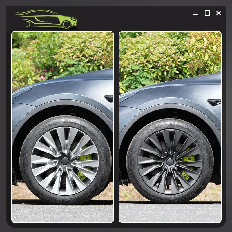 4PCS Hubcap for Model Y 2020-2024 19 Inch New Turbine Style Silver Black Cover Hub Cap Replacement Wheel Cap Design for Tesla